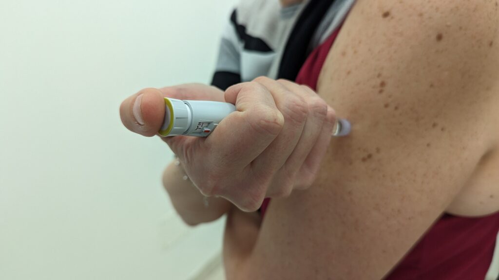 - infilare l’ago a 90° alla base del pizzicotto per raggiungere il tessuto adiposo sottocutaneo